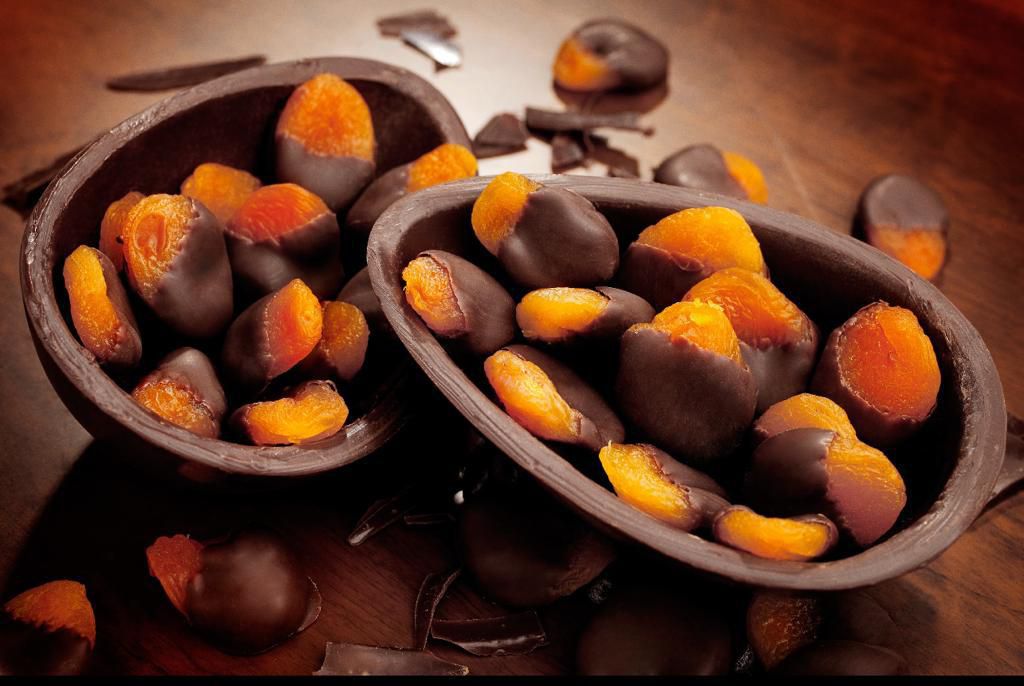 Nosso blend de chocolate ao leite de coco na casca desse ovo, e deliciosos damascos turcos parcialmente cobertos de chocolate são o recheio desse elegante ovo de Páscoa.